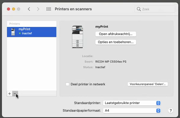 Verwijder een eventuele vorige installatie van de myPrint printer: